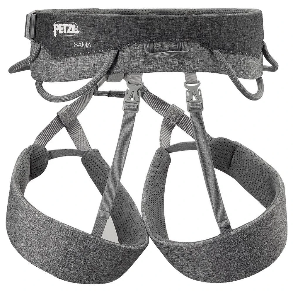 Le Petzl Sama est un harnais lĂ©ger et agrĂ©able Ă porter. La ceinture est travaillĂ©e sur la partie avant pour avoir un maximum de mobilitĂ© mais reste Ă©paisse sur l’arrière pour ĂŞtre ultra confortable. Il est dotĂ© de tours de cuisses Ă©lastiques qui restent bien ajustĂ©s et d’un tour de taille rĂ©glable avec une boucle. Il est pourvu de quatre porte matĂ©riel, deux rigides et deux souples, ainsi que d’un anneau pour sac Ă pof ou autre.