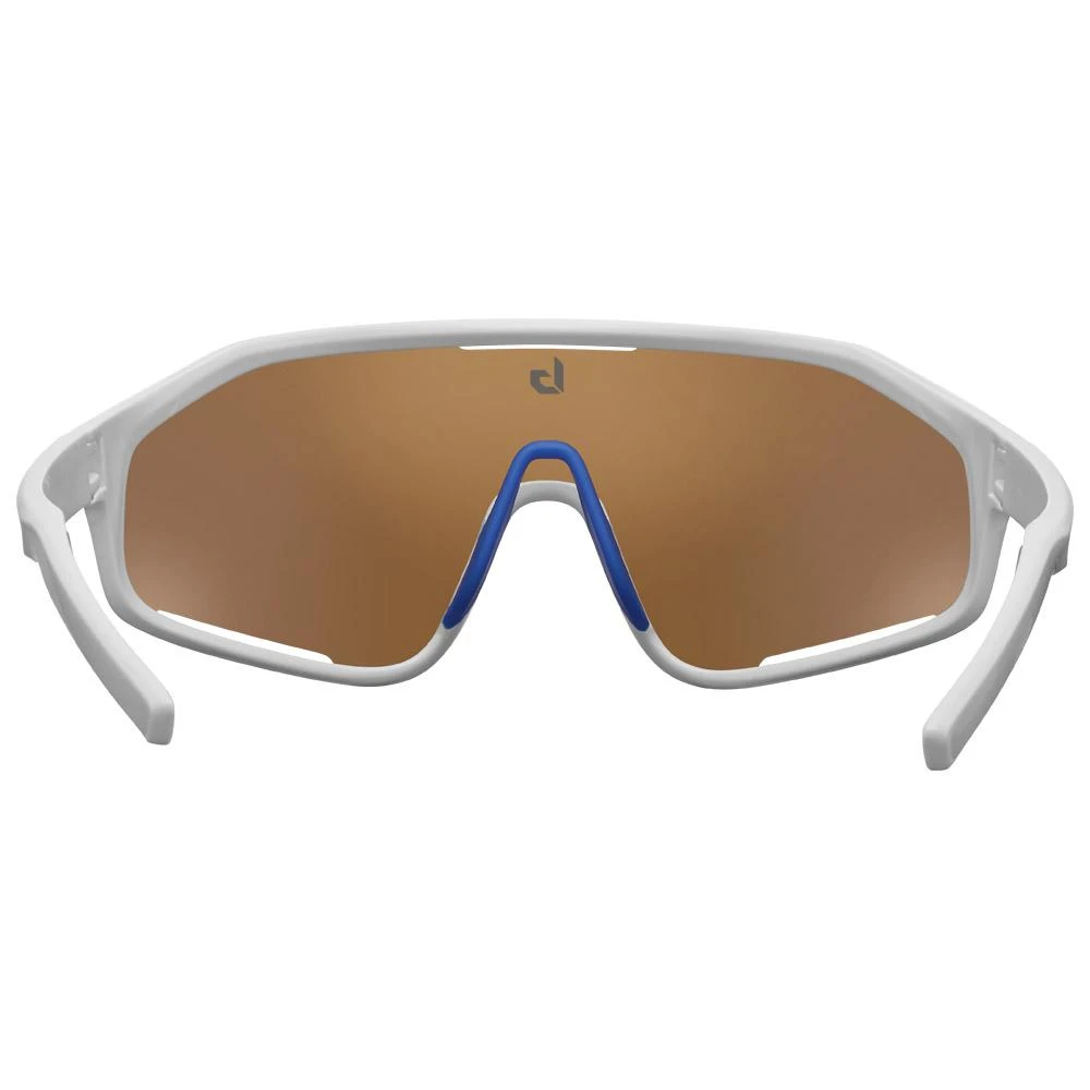 Cette paire est équipée d’un verre unique en polycarbonate, réputé pour sa très grande résistance aux impacts, mais aussi pour sa légèreté. De teinte de base marron, ce verre amplifie les contrastes pour une meilleure perception de la profondeur et des détails. De plus, il est traité avec un miroir bleuté. Ca lui donne un look fun tout en renforcant la protection contre les reflets parasites. Ce verre de catégorie 3 révèle tout son potentiel lorsque la luminosité est forte, lorsque le ciel est parfaitement ensoleillé.