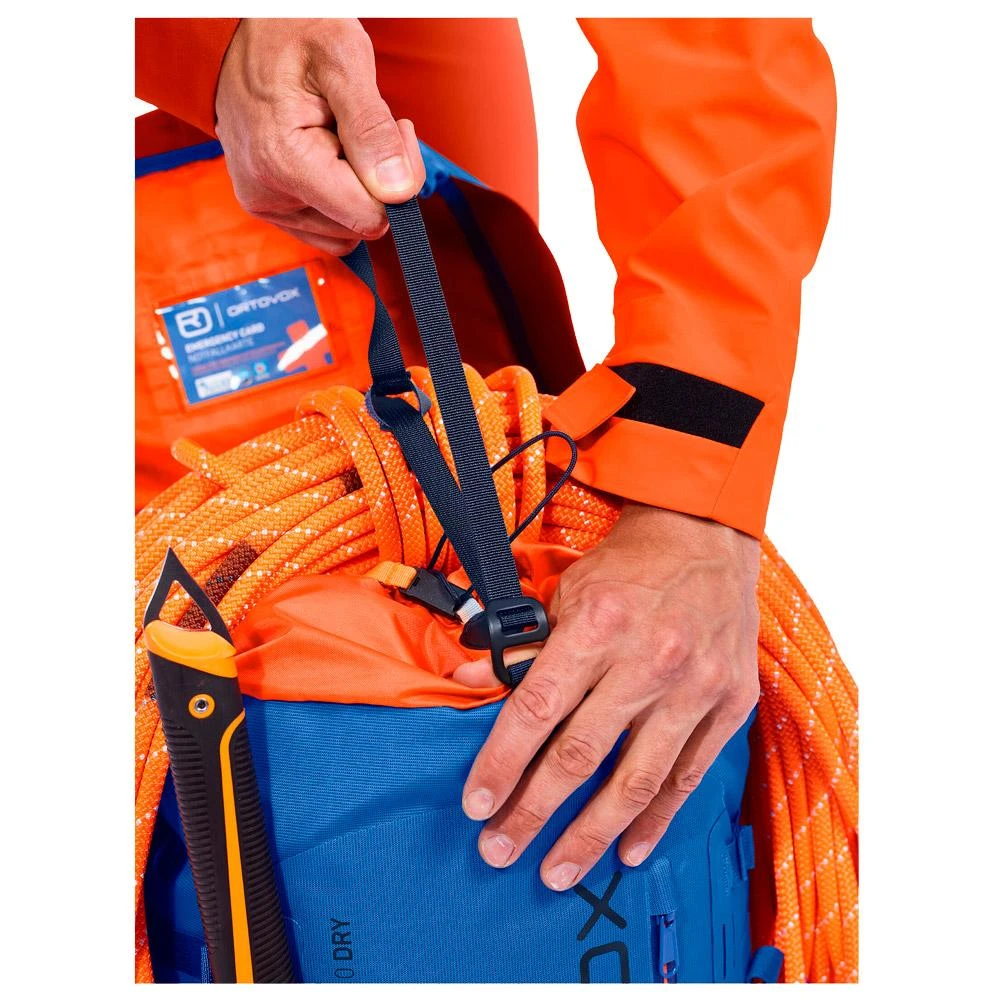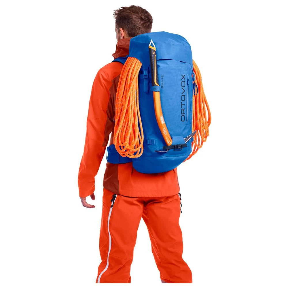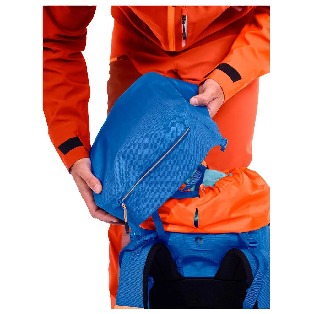 Le sac à dos haute montagne Ortvox Peak 40 Dry vous suit par tous les temps grâce à son revêtement TPU qui lui confère une imperméabilité impressionnante de 50.000 mm, complétée par des coutures et des zips eux aussi étanches pour que l’eau n’ait aucun point d’entrée.